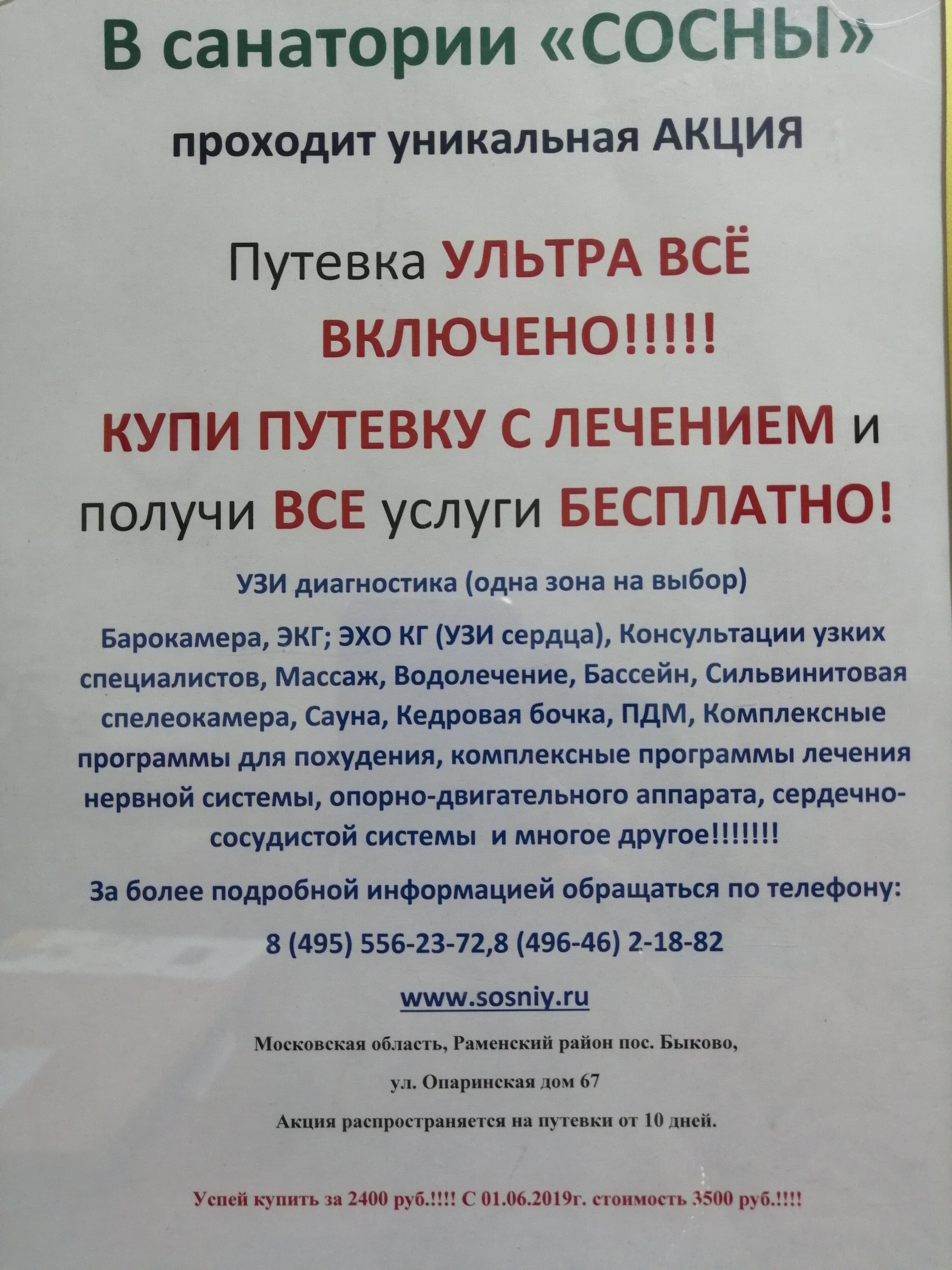 Как санаторий мы предлагаем вам не только отдых, но и возможность поправить здоровье. Покупая путевку в санаторий Сосны, вы получаете шанс улучшить сон, состояние суставов, кровообращение и многое другое.